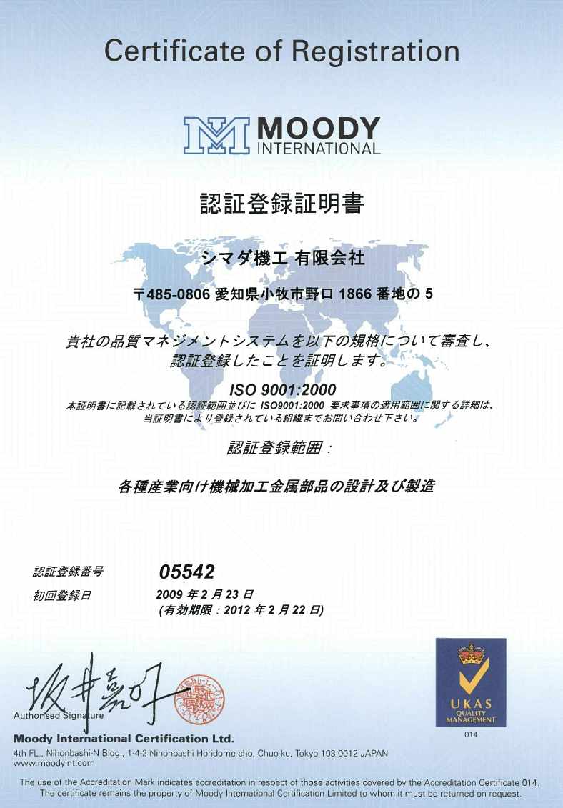 シマダ機工 2026年のカレンダー