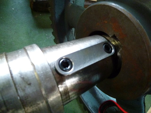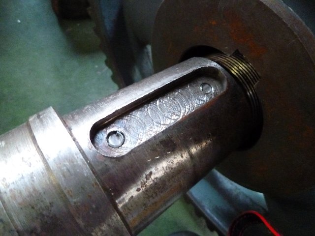ボルトも折れてしまってこの部分はもう使えないので、180度反対の位相に新しくキー溝をきります。