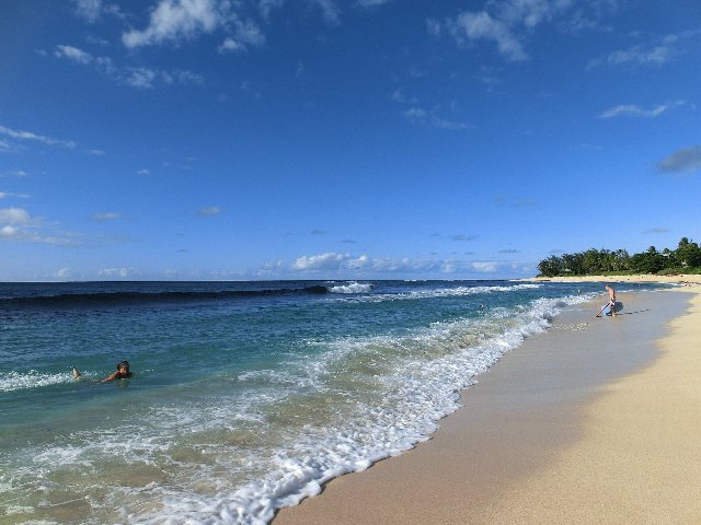 サーフィンの聖地、ノースショアのサンセットビーチに到着。