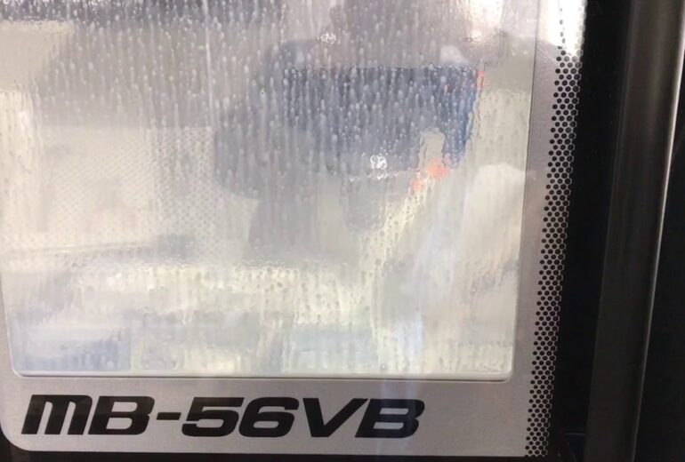 この製缶は板厚10mmで薄くて、けっこう強度が弱いためクランプひずみで平面度や直角度を悪化させないようにクランプしたり、加工時にビビらないように調整したりなどの段取りテクニックが必要なものです。