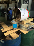 ただいま1枚ずつ穴あけ位置が異なるプレートを、同じ段取りで何枚もじゃんじゃん加工しています。