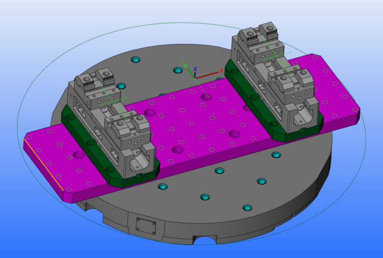 5軸バイスで長い大物がつかめるように